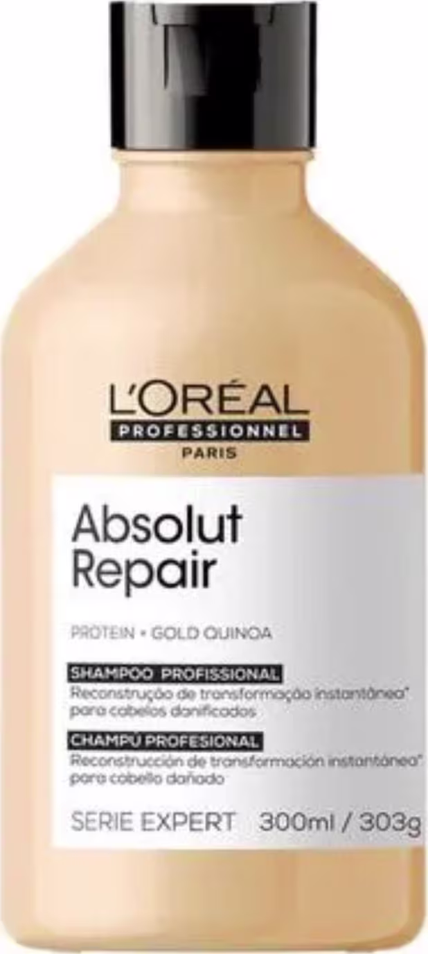 L'Oréal Professionnel Serie Expert Absolut Repair Gold - Shampoo 300ml: Reestrutura a fibra capilar, confere brilho e leveza. + Refil 240ml Absolut Repair.