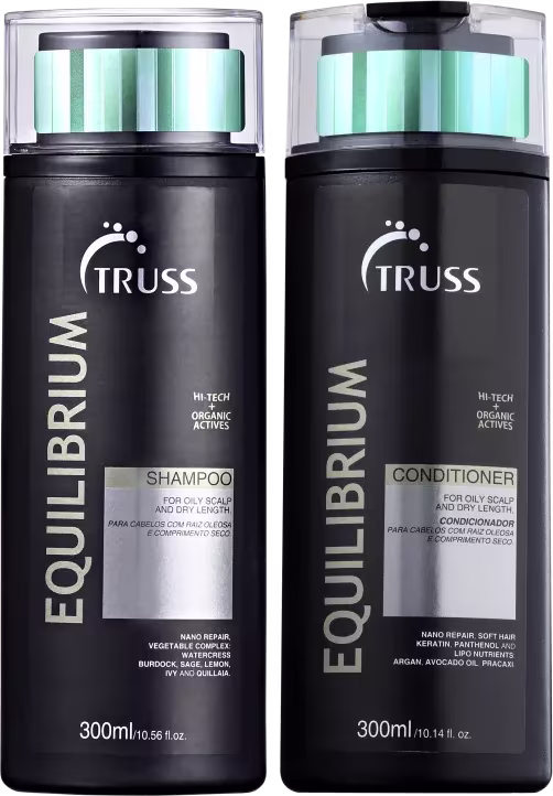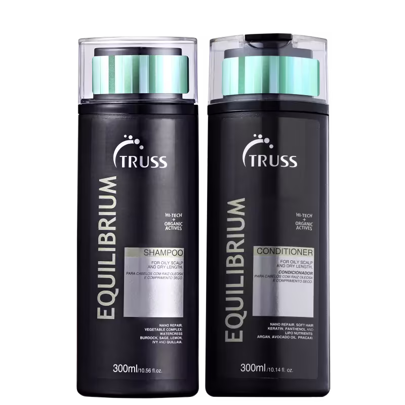 O Kit Truss Equilibrium foi desenvolvido especialmente para quem apresenta o couro cabeludo mais oleoso e as pontas ressecadas.