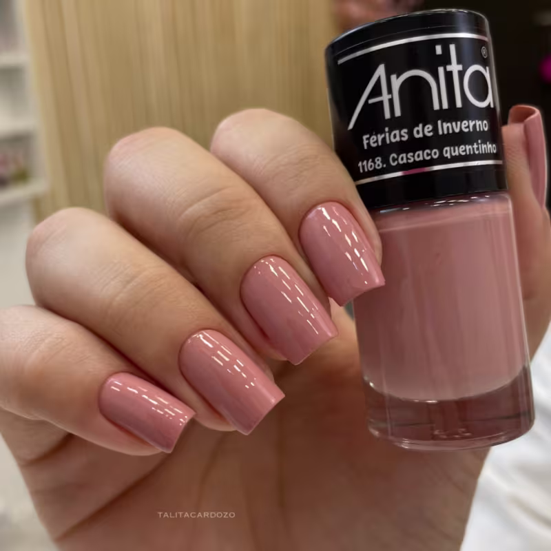 Esmalte Anita Férias de Inverno Casaco Quentinho 10 ml, rosa claro delicado e cremoso.