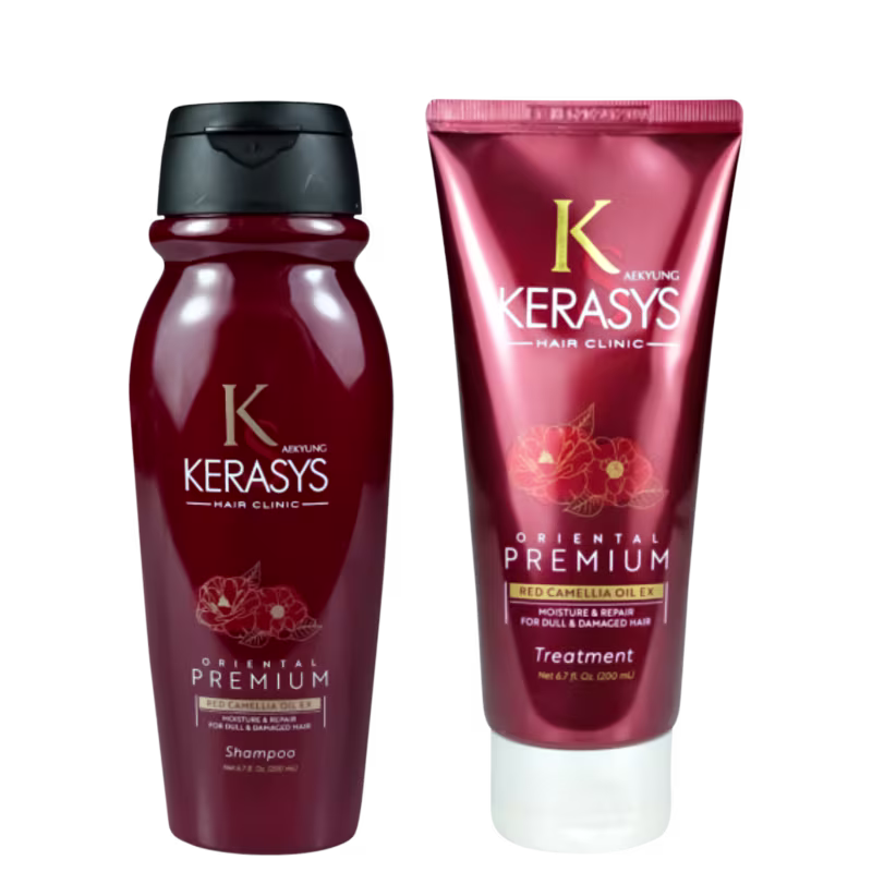 Kerasys Duo Oriental Premium (Shampoo + Máscara) 200mlO Kerasys Oriental Premium Shampoo é inspirado na sabedoria e nas tradições asiáticas, proporcionando uma experiência luxuosa de cuidado e beleza e a Kerasys Red Camellia Oil EX Moisture & Repair é um tratamento capilar inspirado na sabedoria das tradições orientais. Desenvolvida com base no exclusivo sistema Oriental Care System™, oferece uma experiência luxuosa e eficaz de reparação, nutrição e brilho para todos os tipos de cabelo.