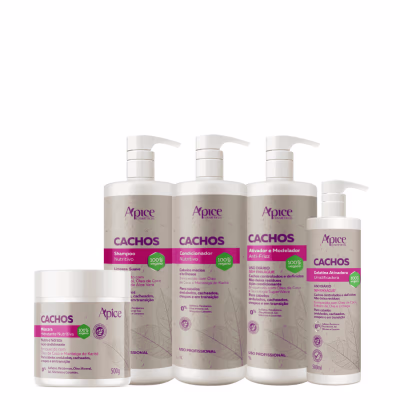 Transforme sua rotina capilar com o Kit Cachos Apice. Compre agora e experimente definição, hidratação e beleza natural todos os dias!