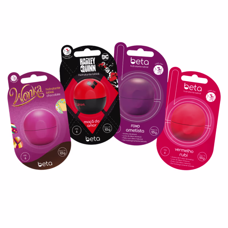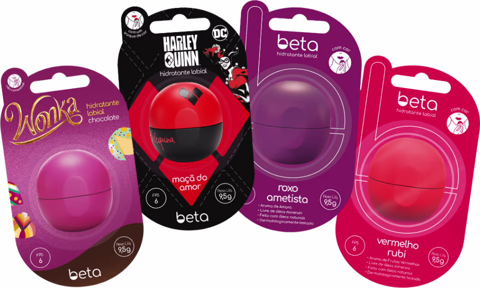 Inclua a hidratação dos seus lábios e mãos em sua rotina de saúde, bem-estar e beleza. Experimente Beta e permita-se sentir a diferença. Beta proporciona o cuidado indispensável de forma prática e com efeito prolongado. Beta é um poderoso hidratante, feito com ingredientes naturais, sem óleos minerais, com toque seco mas com profunda hidratação. Com design de “bolinha”, é mais prático e sofisticado, um produto único e nacional. São 11 versões de hidratantes labiais e 5 versões de hidratantes para mãos. Escolha o seu e experimente! BETA vai revolucionar o jeito de cuidar e proteger os lábios, através de novas sensações, e descobrindo que é possível hidratar com sofisticação, estilo e praticidade.