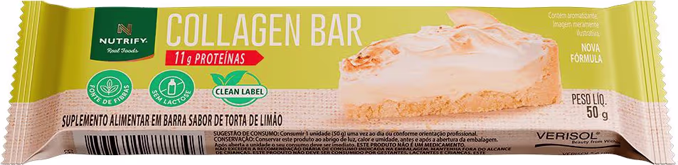 Não sei o CEPMuito mais do que uma barrinha proteica, COLLAGEN BAR oferece 11 g de proteína por porção para complementar sua ingestão diária de forma prática e saborosa. Sua fórmula exclusiva conta com 2,5 g de peptídeos bioativos de colágeno VERISOL®, dose ideal para auxiliar na manutenção da saúde da pele. Contém ainda a biotina, uma vitamina que contribui para a manutenção dos cabelos.