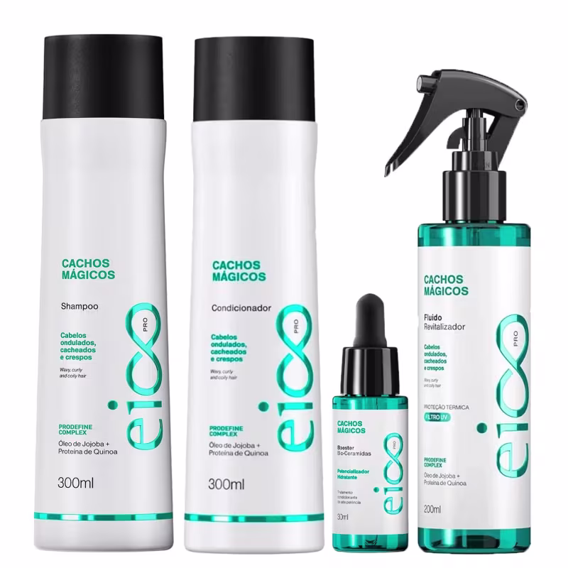 Kit Eico Pro Cachos Mágicos - Shampoo 300ml + Condicionador 300ml + Fluido 200ml + Booster 30ml