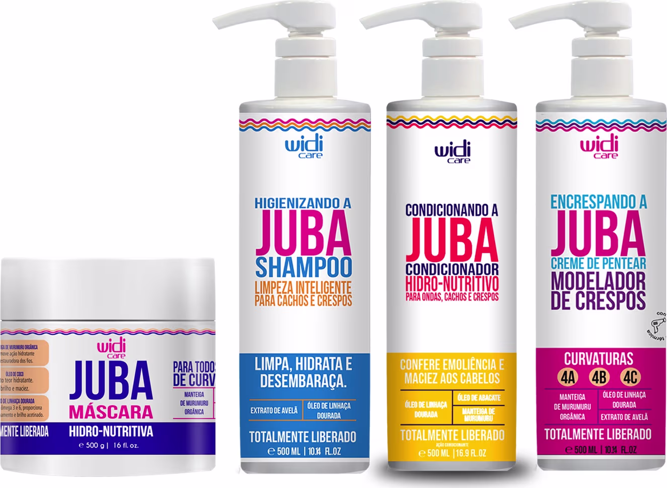 O Juba Encrespando atende as curvaturas 4A, 4B e 4C! Eles possuem na sua composição manteiga de murumuru, extrato de avelã e óleo de linhaça dourada, que deixam o seu cabelo mega definido e hidratado, com proteção térmica!