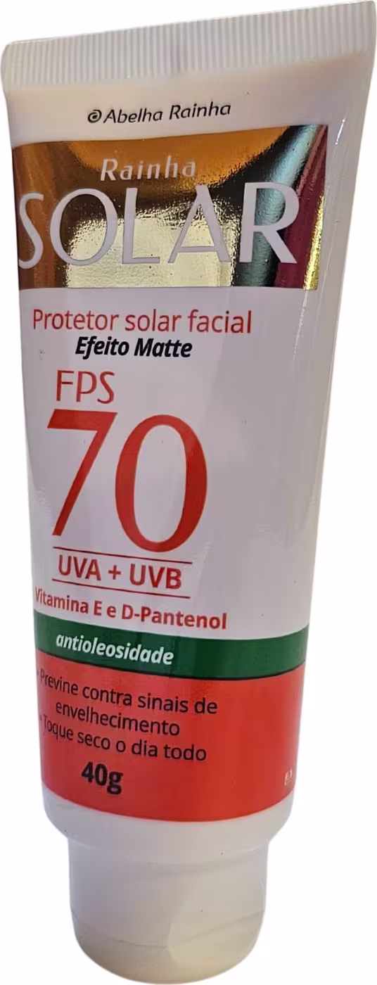 Abelha Rainha Rainha Solar Protetor Solar Facial Antioleosidade Efeito Matte FPS 70 40g