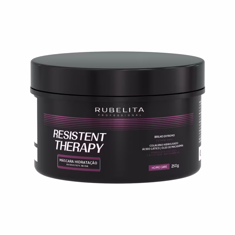 Rubelita Professional Máscara Resistent Therapy Hidratação Capilar 250g é um tratamento profundo desenvolvido para restaurar a saúde dos fios fragilizados, ressecados ou danificados por químicas e agressões externas. Sua ação intensiva hidrata e fortalece desde a primeira aplicação, devolvendo vitalidade e movimento natural ao cabelo.