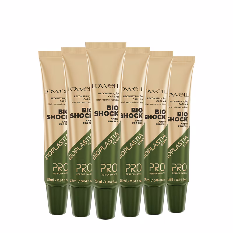 Lowell Bioplastia Clinic Bio Shock - Tratamento Reconstrutor 25ml (6 unidades): reconstrói cabelos em 3 minutos, recuperando danos pós-química e deixando os fios fortes, saudáveis e resistentes.