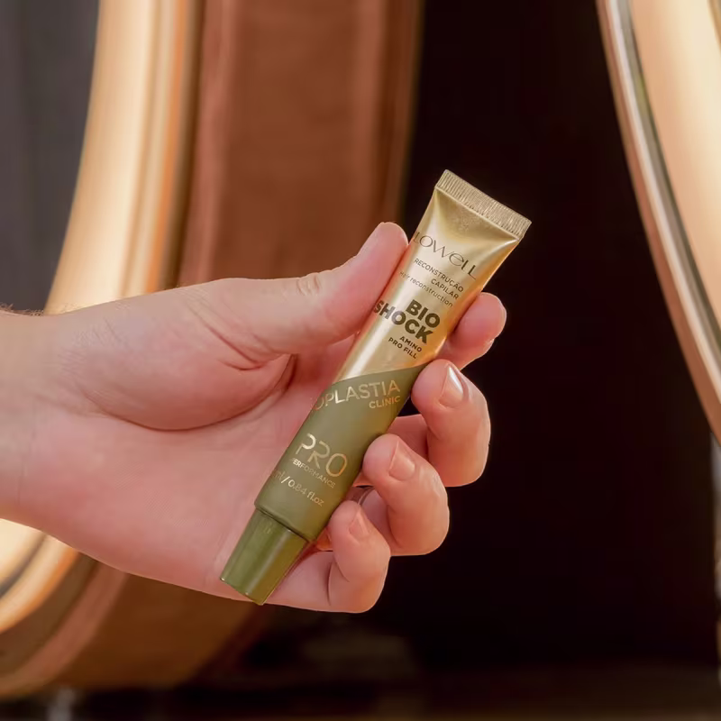 Lowell Bioplastia Clinic Bio Shock - Tratamento Reconstrutor 25ml (3 unidades): proporciona reconstrução eficaz em 3 minutos. Indicada especialmente para uso pós-processos químicos, como alisamentos e descolorações. Garante fios fortes e saudáveis.