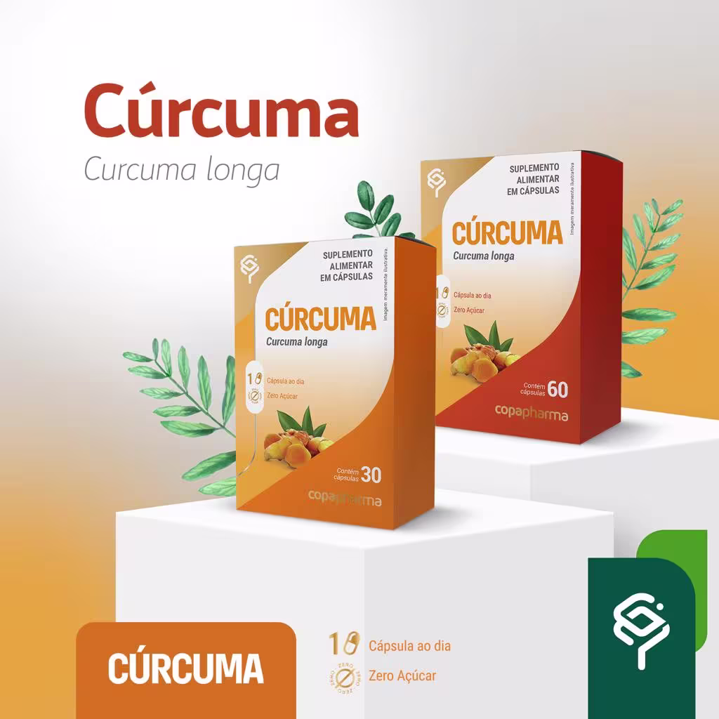 A Curcuma da Copapharma possui em sua composição o extrato de rizomas de Curcuma longa, uma planta popularmente conhecida como açafrão, açafrão da terra, gengibre amarela e raiz de sol. A cúrcuma é muito utilizada como especiaria em países como Índia e China. Como suplemento alimentar, sua função é ser fonte de curcumina que é a substância bioativa desta raiz.