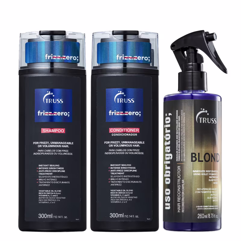 KIT TRUSS FRIZZ ZERO SHAMPOO + CONDICIONADOR + USO OBRIGATORIO BLOND