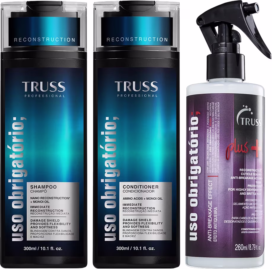 Truss Uso Obrigatório Kit Shampoo Condicionador e Plus+ Reconstrutor 260ml