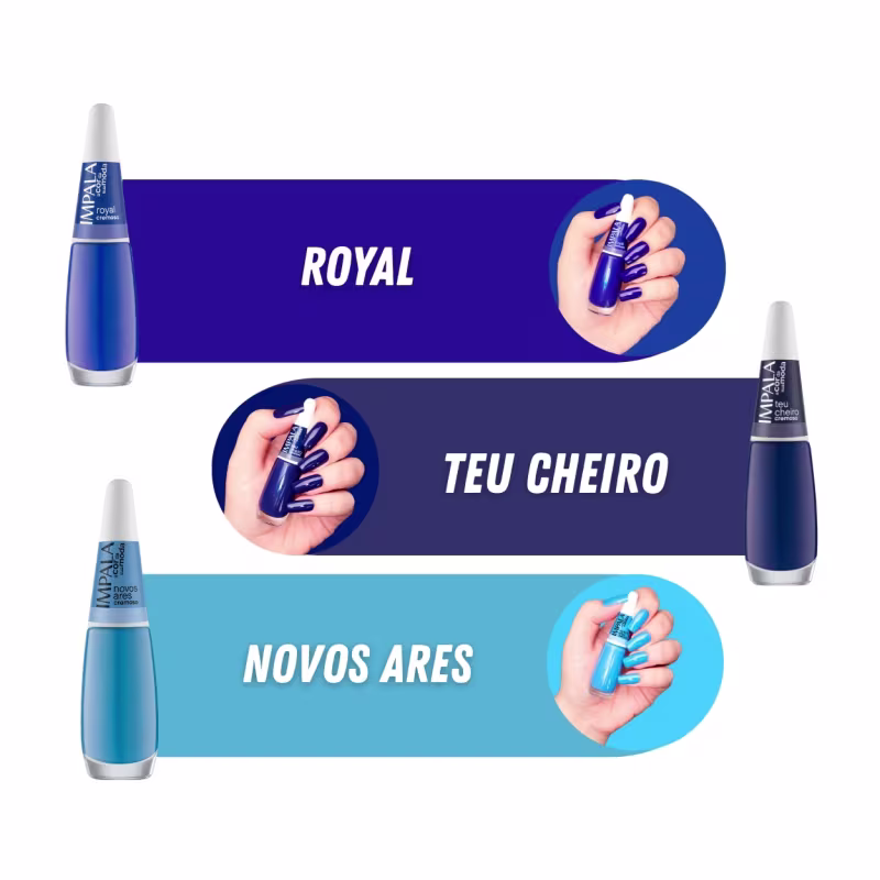 Com tons elegantes, aplicação fácil e acabamento impecável, o Kit Impala Tons de Azul é tudo que suas unhas precisam para arrasar. Garanta já o seu e leve mais cor, charme e atitude para sua rotina!