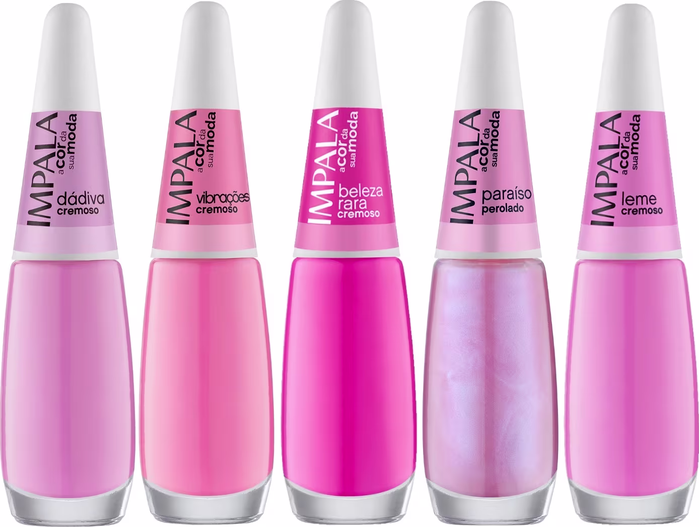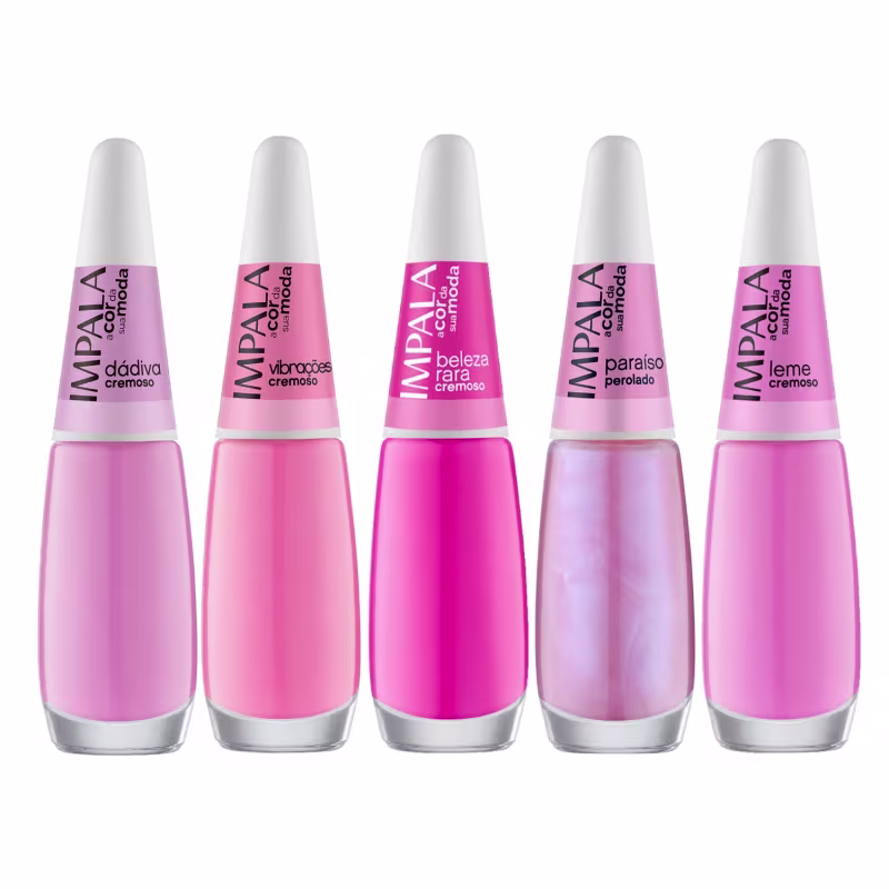 O Kit 5 Esmaltes Impala Tons de Rosa Pink Cremoso traz o rosa em sua versão mais intensa, moderna e cheia de personalidade, perfeito para destacar qualquer look com muito estilo.