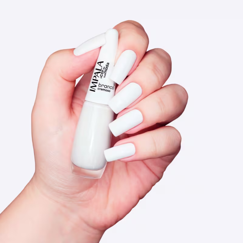 Unhas perfeitas começam com uma boa escolha, e o Esmalte Impala Branco Cremoso entrega tudo: cobertura impecável, secagem rápida e muito estilo!