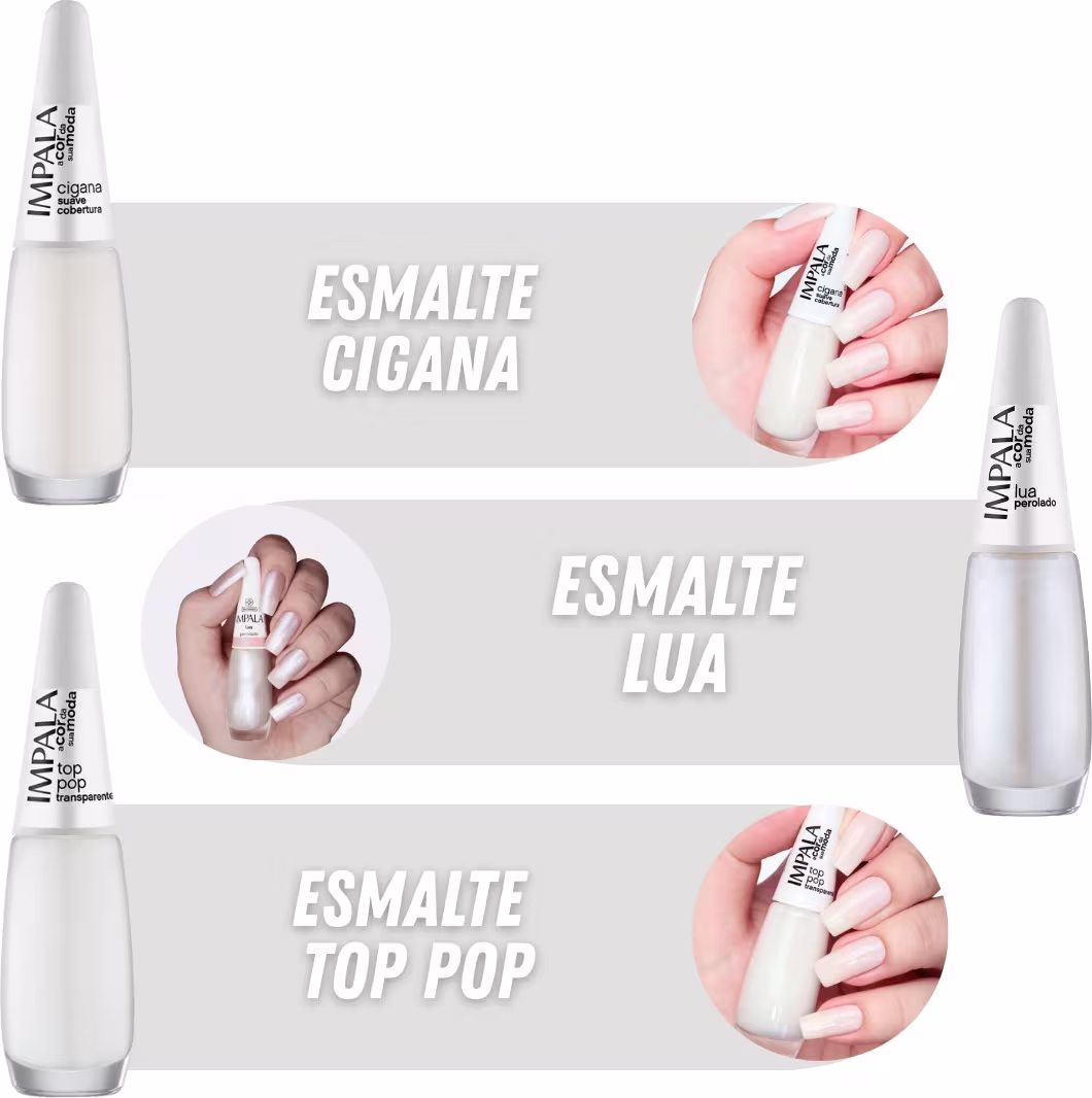 - 1 Esmalte Impala A Cor da Sua Moda Unha Branco Cremoso.