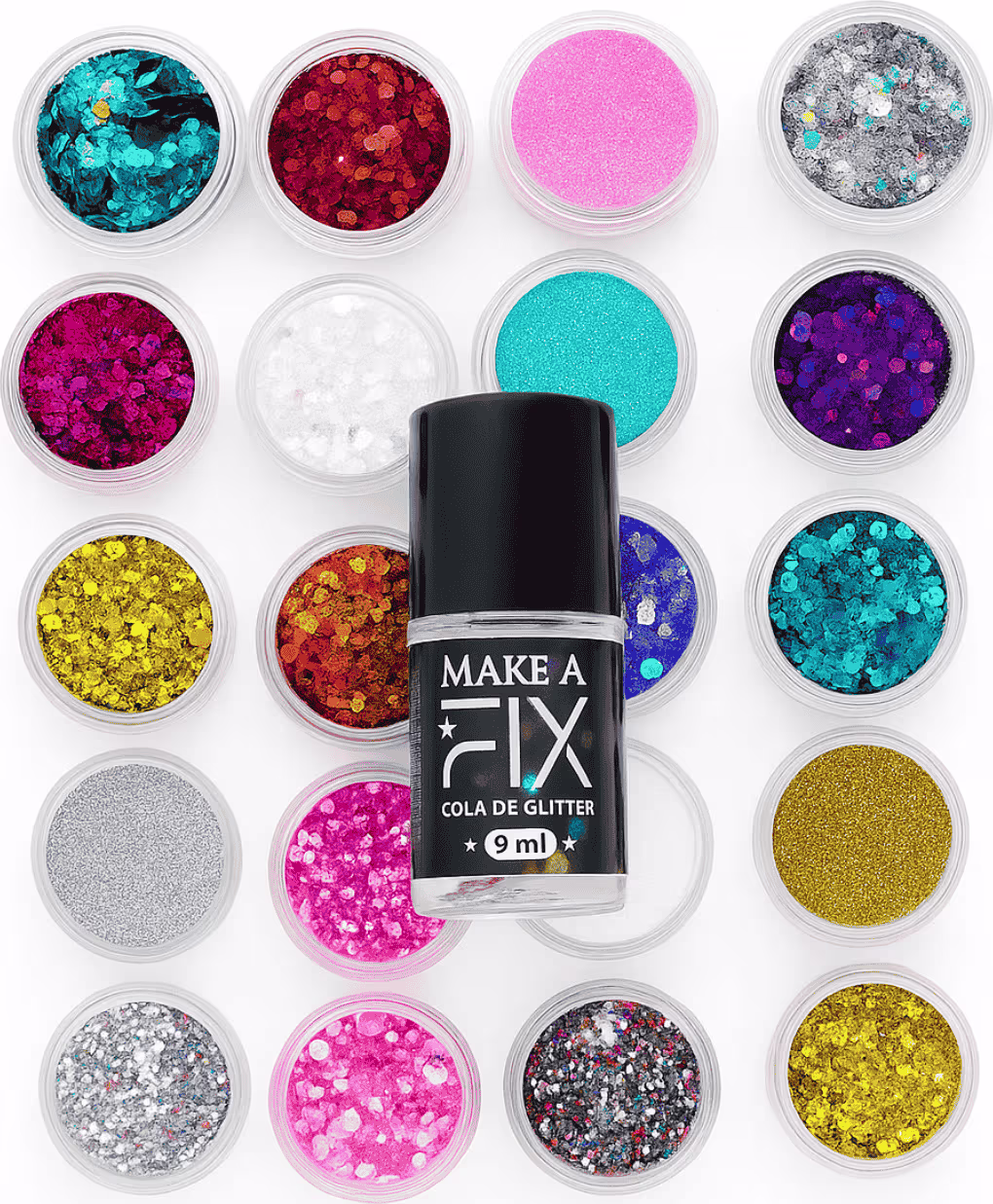 Com 20 glitters, textura ultrafina e brilho sofisticado, combinados com a cola Make A de alta fixação, você garante durabilidade e impacto em cada aplicação.