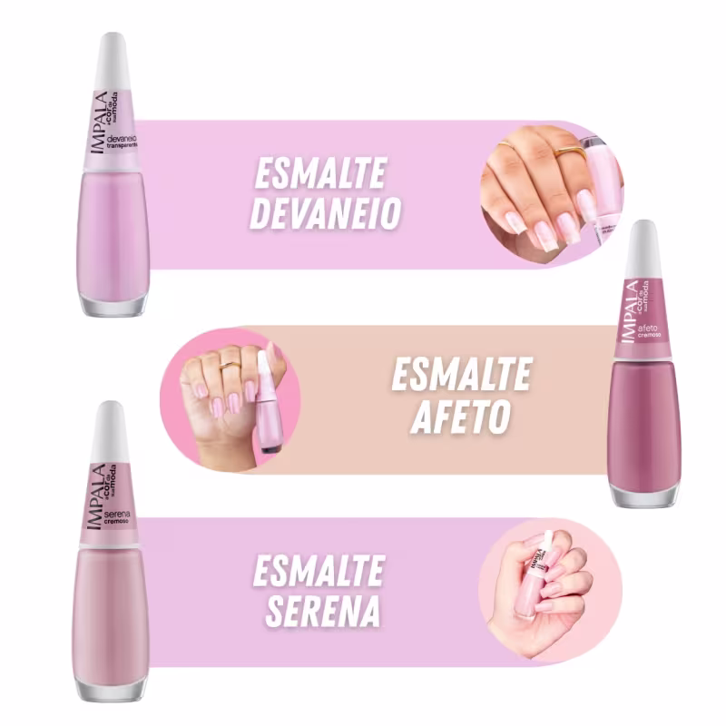 De delicada a poderosa: transforme seu estilo com os tons de rosa mais apaixonantes do Kit Esmalte Impala A Cor da Sua Moda!