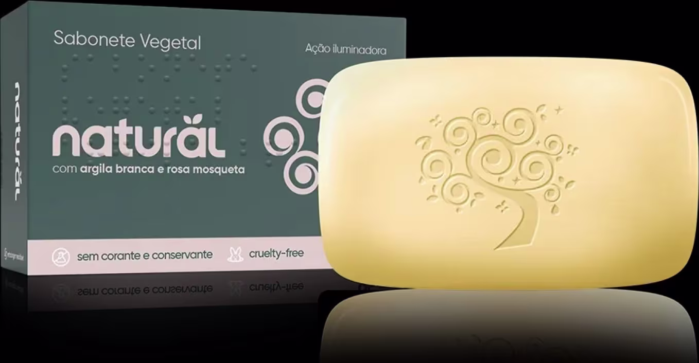 COMPOSIÇÃO: Massa base vegetal [sodium palmate (palmato de sódio), sodium palm kernelate (kernelato de palma de sódio), sodium stearate (estearato de sódio), sodium chloride (cloreto de sódio), glycerin (glicerina), sodium hydroxide (hidróxido de sódio), tetrasodium EDTA (EDTA tetrassódico), etidronic acid (ácido etidrônico), aqua (água)], parfum (fragrância), kaolin (caulim), rosa canina flower oil (óleo de rosa mosqueta). Ingrediente orgânico: chamomilla recutita (matricaria) flower extract (extrato de camomila).