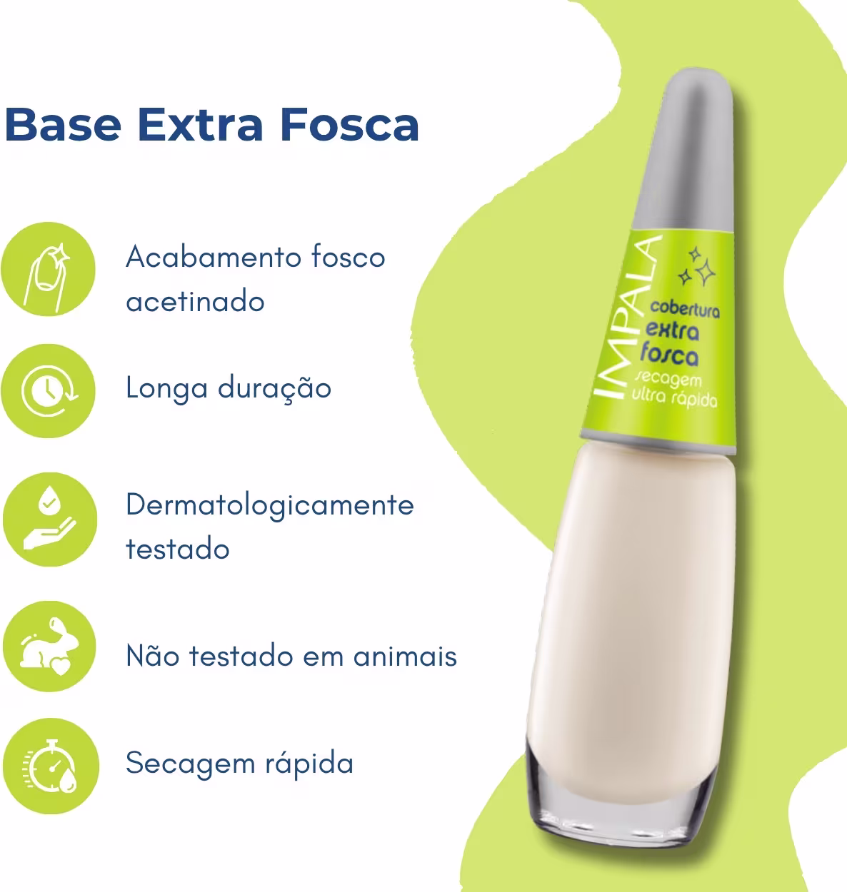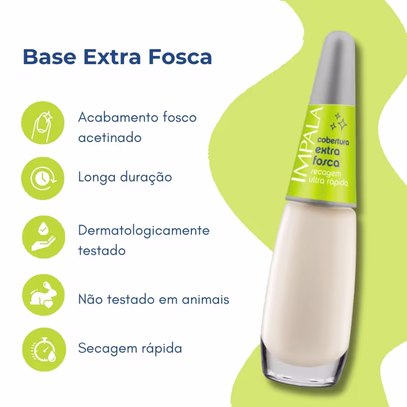 Dê um toque fosco cheio de estilo às suas unhas, garanta já o seu Kit Impala Base Extra Fosca e arrase no acabamento!