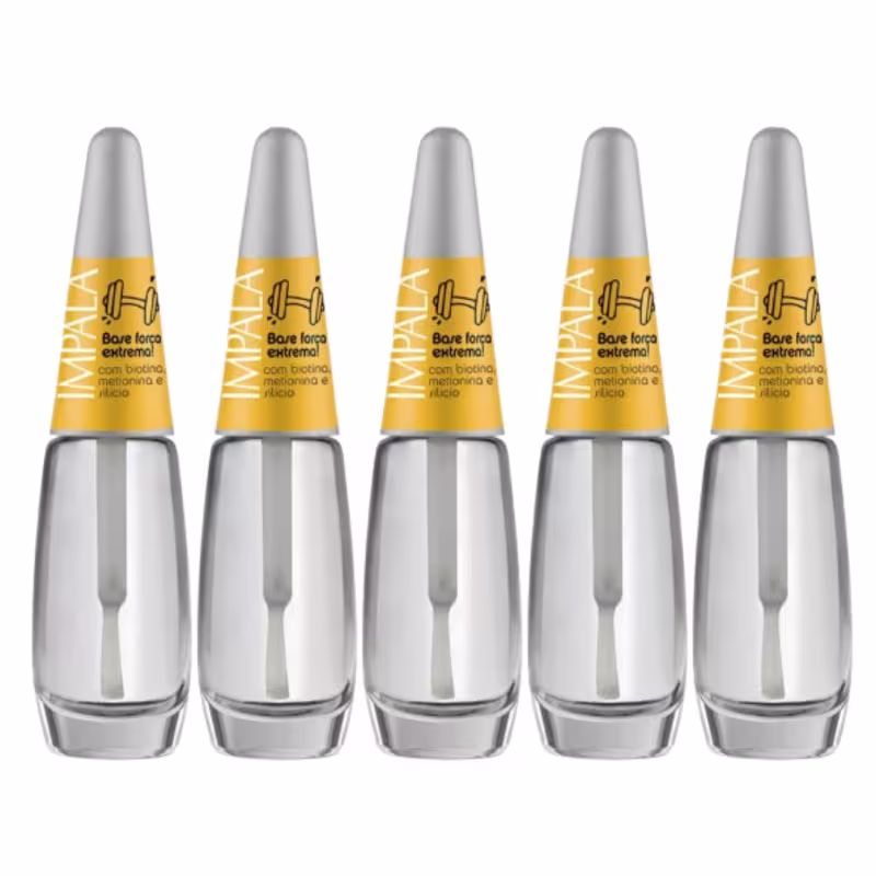Unhas mais fortes, bonitas e protegidas desde a primeira aplicação! O Kit Esmalte Impala Base Força Extrema foi desenvolvido para quem sofre com unhas frágeis, quebradiças e precisa de um cuidado intenso e eficaz.
