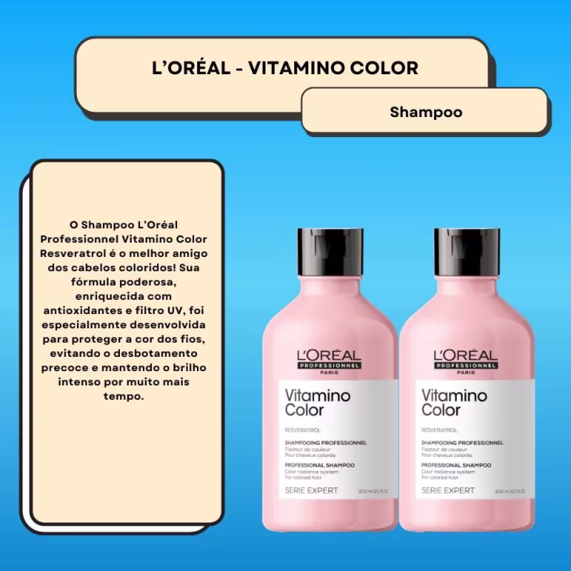 Contém:02 Unidades L'Oréal Professionnel Vitamino Color Shampoo 300ml