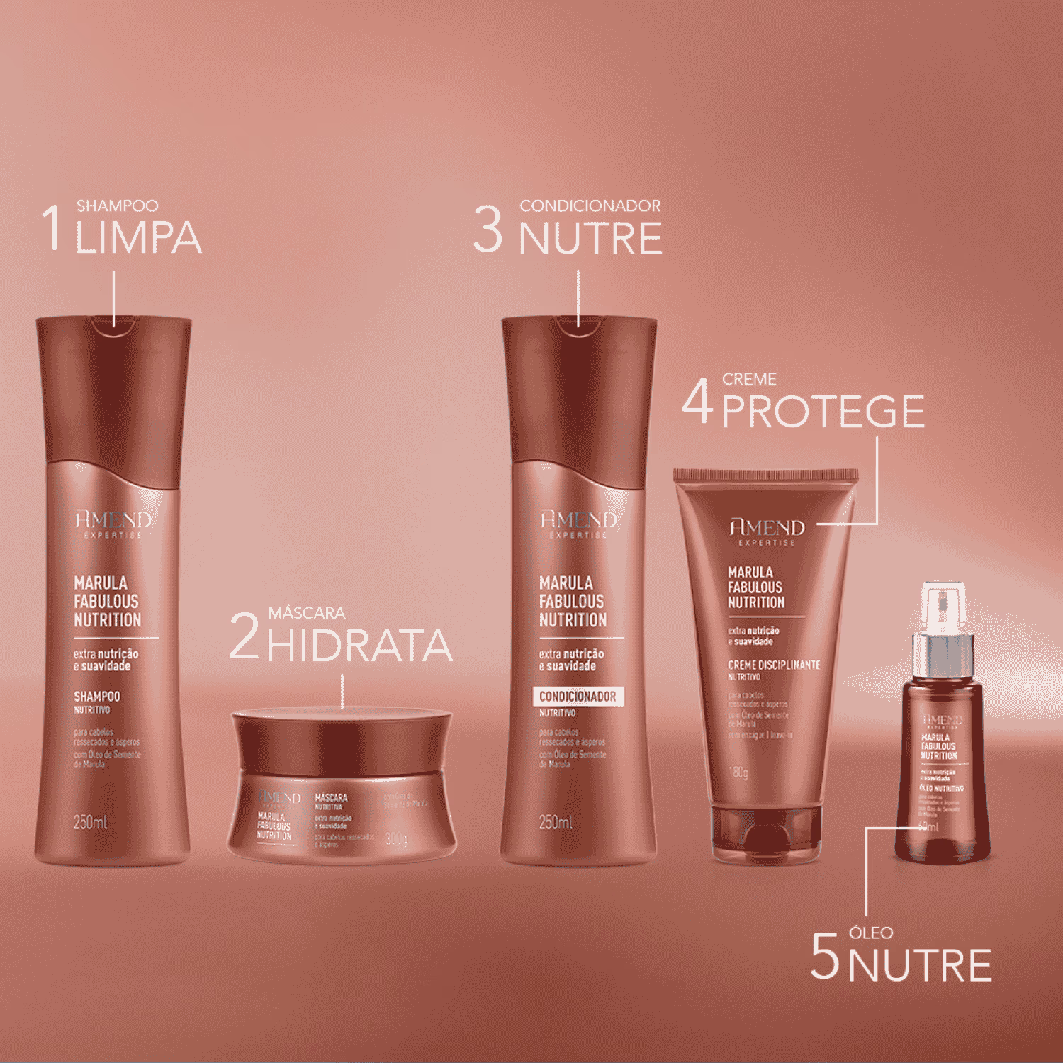 Não sei o CEPKit para cabelos ressecados e ásperos. Kit Amend Marula Fabulous Nutrition Duo promove um cuidado diário que deixa os fios sedosos e hidratados por mais tempo. Ainda faz uma limpeza suave e facilita o pentear.