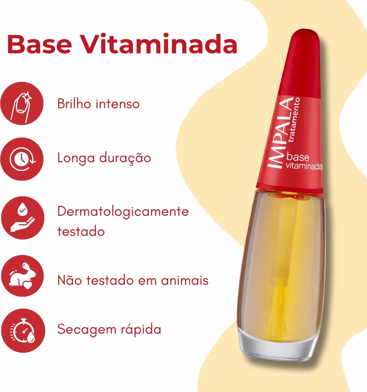 Com o Kit Impala Base Vitaminada, você garante cuidado diário, unhas mais resistentes e uma esmaltação mais duradoura.