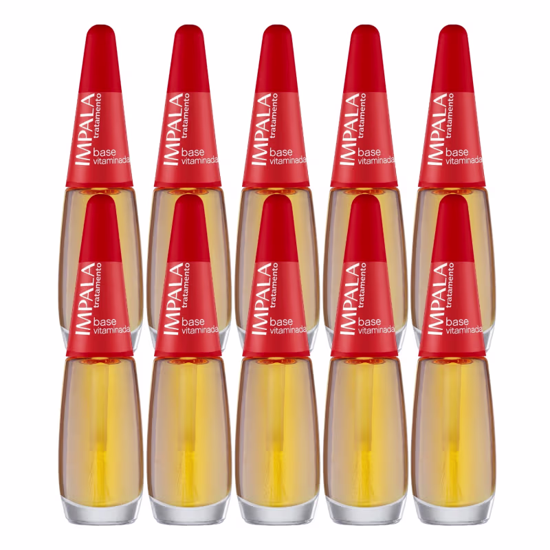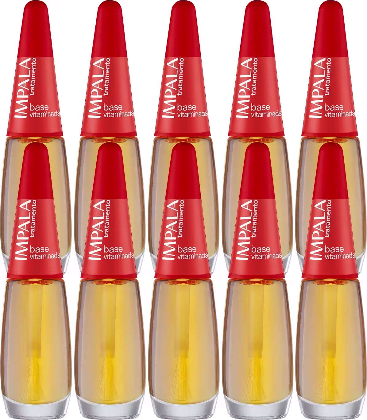 Kit 10 Esmaltes Impala Tratamento Base Vitaminada Manicure