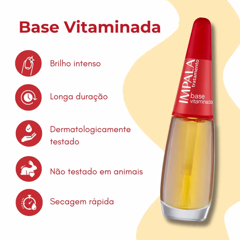 Com o Kit Impala Base Vitaminada, você garante cuidado diário, unhas mais resistentes e uma esmaltação mais duradoura.
