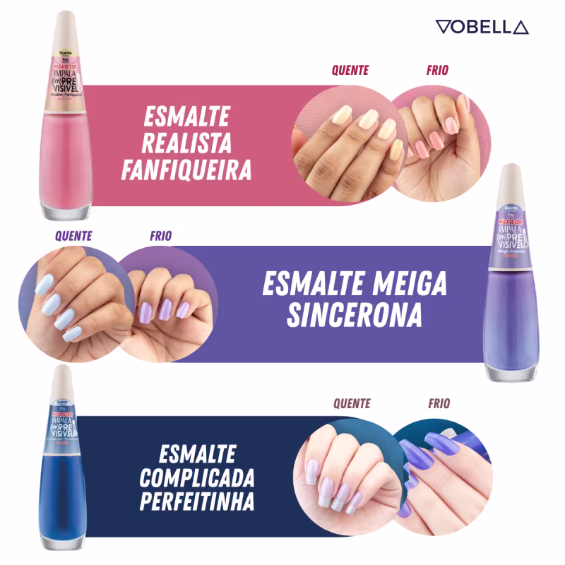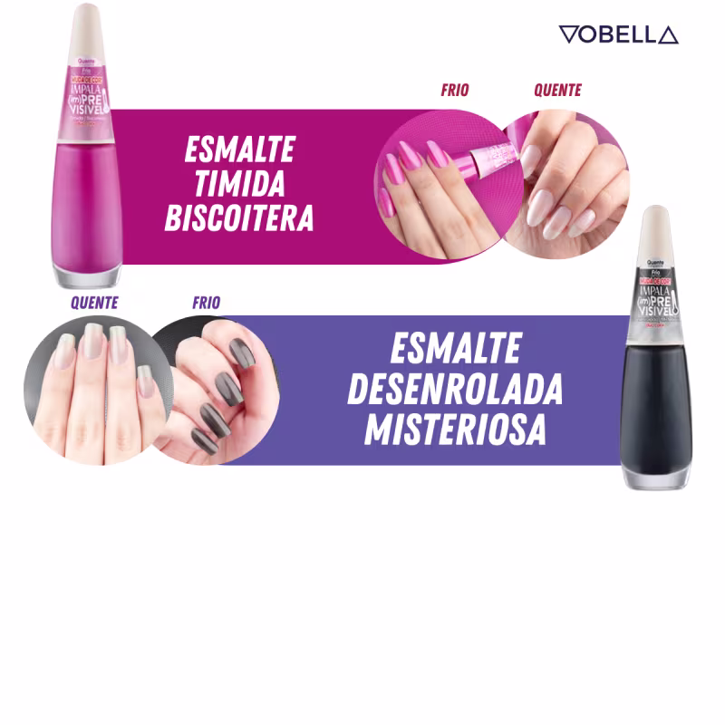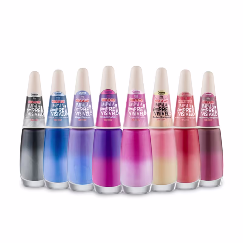 Unhas que mudam de cor com a temperatura? Sim, é real! O Kit 8 Esmaltes Impala Duo Color Térmico transforma sua esmaltação em um espetáculo de cores, com efeitos únicos e cheios de estilo.
