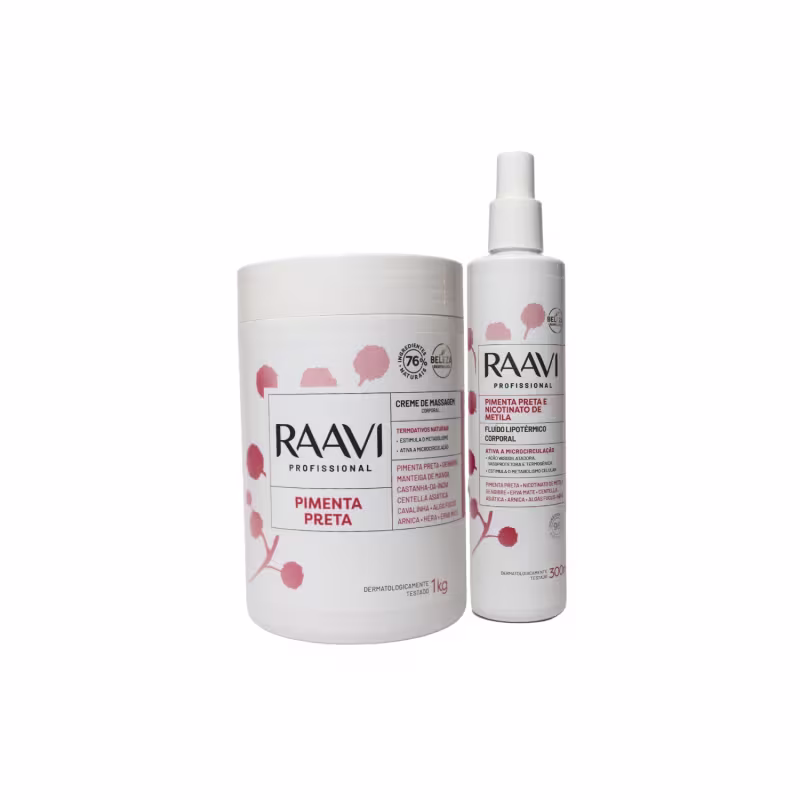 Transforme suas sessões de massagem em uma experiência única de relaxamento e cuidado. OKit Creme De Massagem E Spray Fluído Pimenta Corporal Raavi é o toque de luxo que sua pele merece!