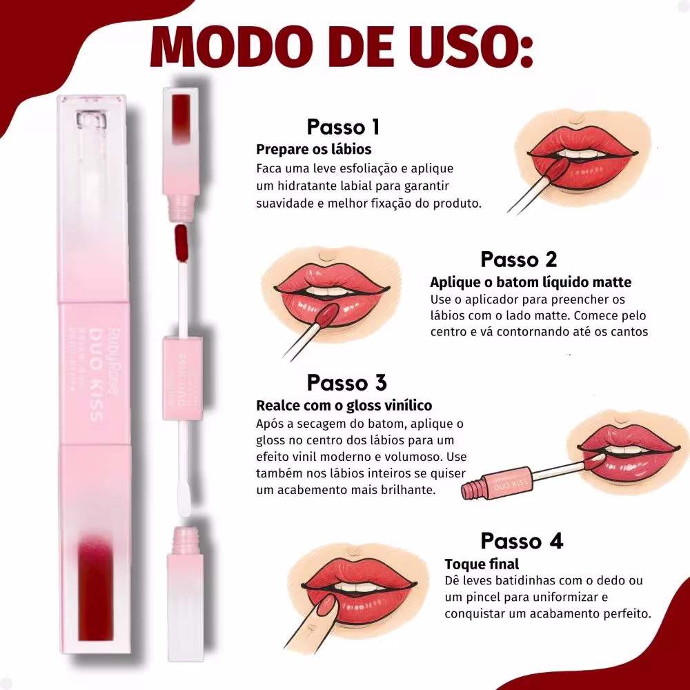 O batom matte tem excelente fixação, podendo durar várias horas. O gloss, por ser mais leve, pode precisar de retoques ao longo do dia, especialmente após comer ou beber.