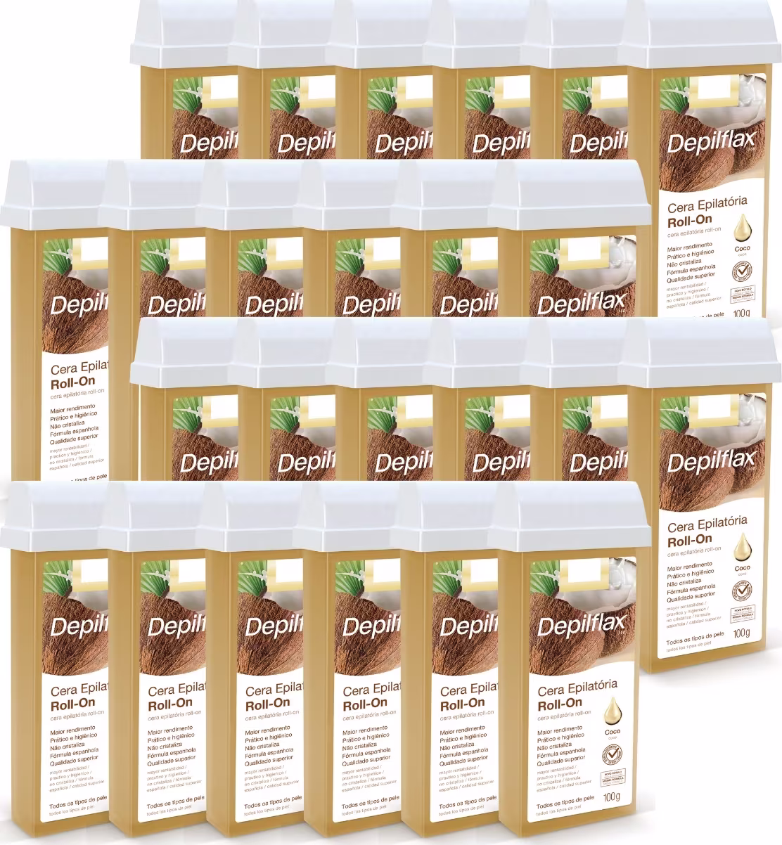 Kit 24 Ceras Roll-on Depilatória Coco Maciez Refil Depilflax