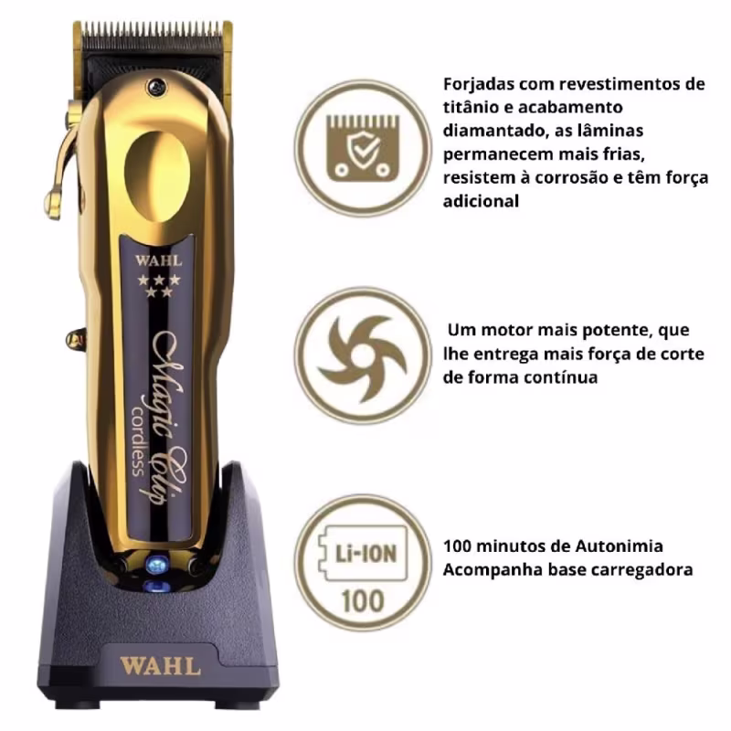 Não sei o CEPCombo Wahl Magic Clip Gold e Detailer Li Gold: