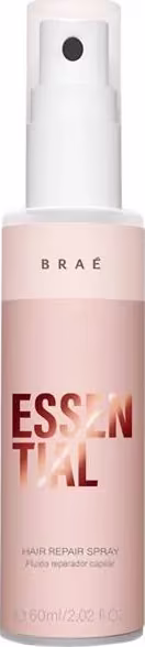 Braé Essential Hair Repair Spray - Fluido Reparador 60ml: repara, hidrata, protege, reconstrói e proporciona brilho intenso aos fios. Pode ser utilizado como finalizador ou tratamento reparador.