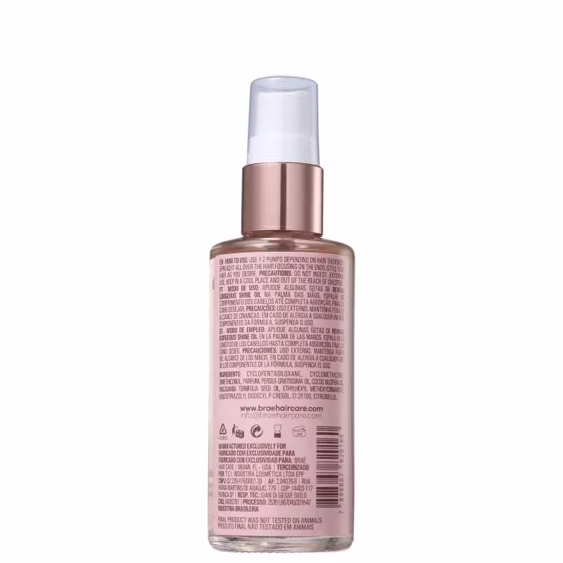 Braé Revival Gorgeous Shine Oil - Óleo Capilar 60ml: facilita o pentear, nutre e repara os fios de acordo com a necessidade. Cuida imediatamente dos cabelos desestruturados.