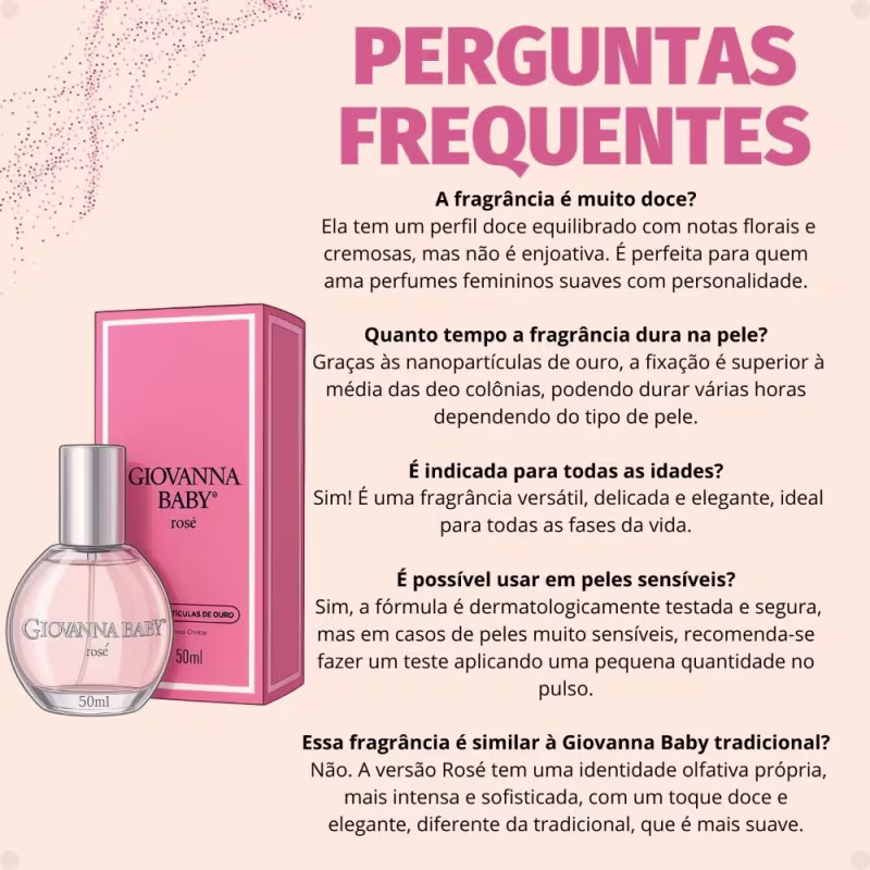 A Deo Colônia Giovanna Baby Rosé é perfeita para o uso cotidiano, seja no trabalho, em passeios ou em encontros casuais.