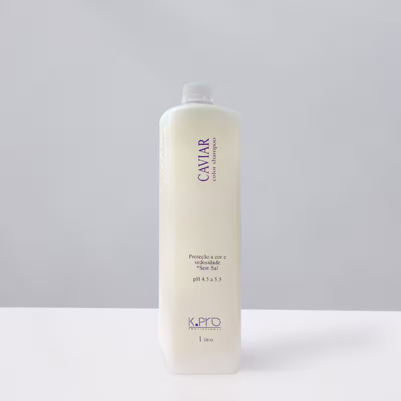 K.Pro Caviar Color - Shampoo 1L: foi desenvolvido com as mais inovadoras tecnologias para proteção intensa a coloração, reconstrução (queratina hidrolisada) e brilho intenso. Formulado com extrato de caviar, rico em vitaminas antioxindantes, aminoácidos e lipídios essenciais à hidratação e sedosidade dos fios. Possui em sua formulação semente de girassol, um poderoso antioxidante com Argan e silicones para potencializar a adesão dos pigmentos, tornando o Caviar Shampoo um dos produtos mais avançados para aumentar a durabilidade, o brilho e a intensidade da cor.
