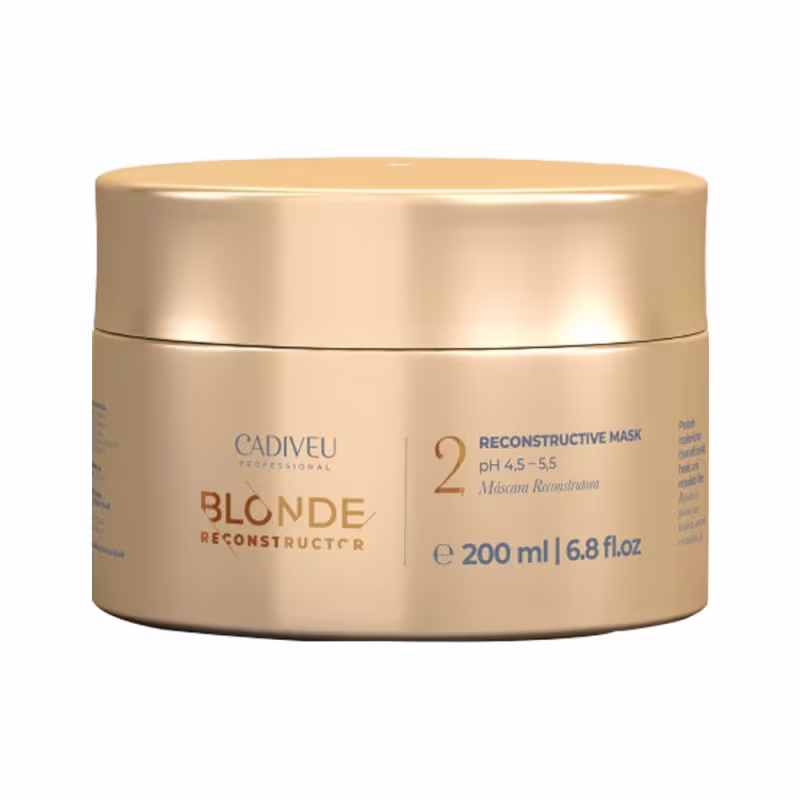 A Máscara de Reconstrução Cadiveu Professional Blonde Reconstructor Reconstructive foi desenvolvida para tratamento dos fios loiros, descoloridos, coloridos e com mechas, pré e pós os processos de transformação, a fim de manter os cabelos intactos e saudáveis, pois possui proteína de pérola e lipídeos, que rebalanceiam o pH dos fios descoloridos enquanto reduz porosidade e sela profundamente as cutículas, tornando os cabelos resistentes e ultra brilhantes. Faz parte de um sistema exclusivo de blindagem avançado que promove máxima proteção durante o processo de transformação, protegendo os fios da ação destrutiva dos descolorantes em até 70%, garantindo fios inquebráveis e radiantes.