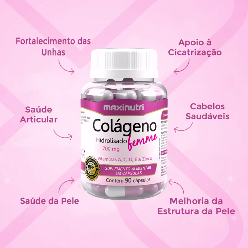 Colágeno Femme Maxinutri Vitaminas A-C-D-E ZINCO.