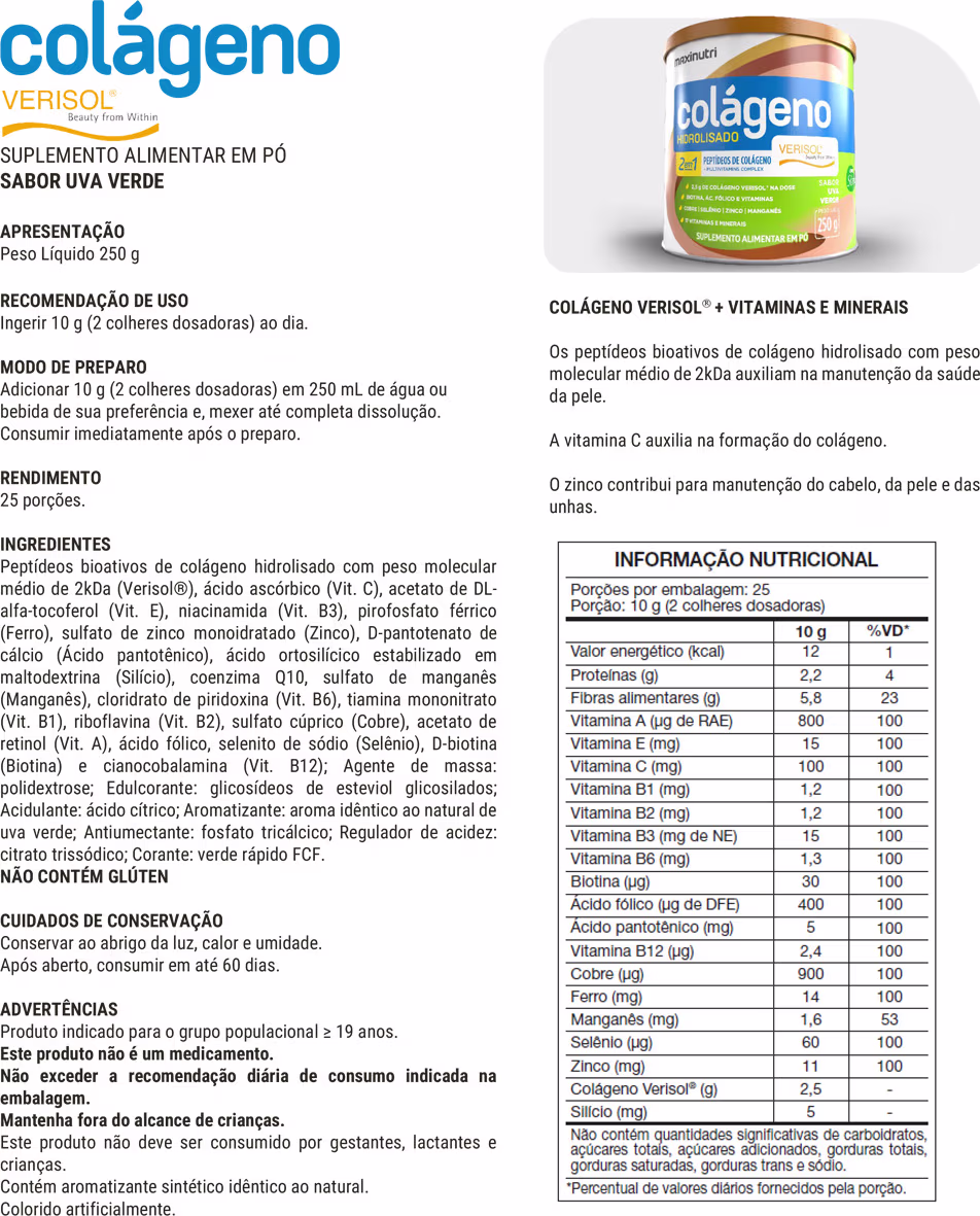 Colágeno Verisol Maxinutri Lata 250g Sabor Uva Verde