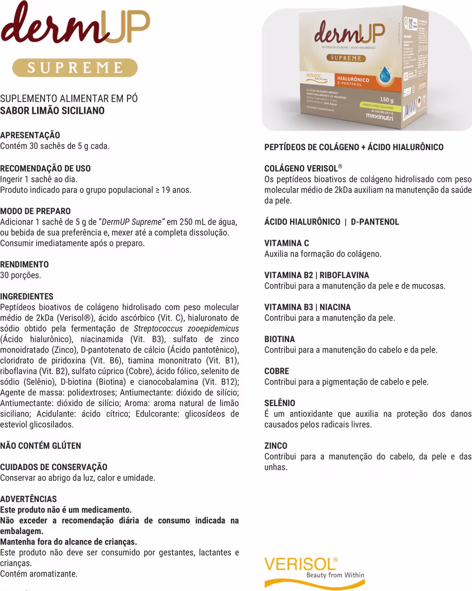 DermUP Supreme é um suplemento alimentar nutricosmético