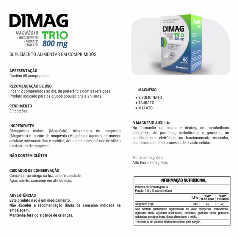 Kit 3 Dimag Trio Magnésio Bisglicinato Taurato e Malato 60 Caps