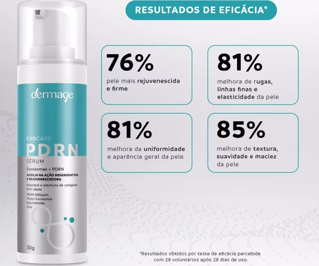Contém PDRN (Polidesoxirribonucleotídeo) – Ingrediente bioativo que estimula a regeneração celular e a produção de colágeno.