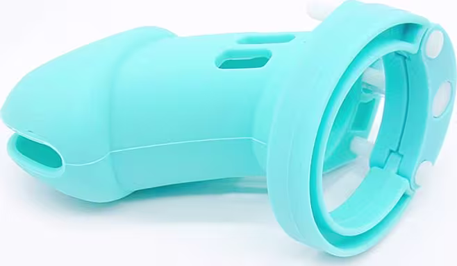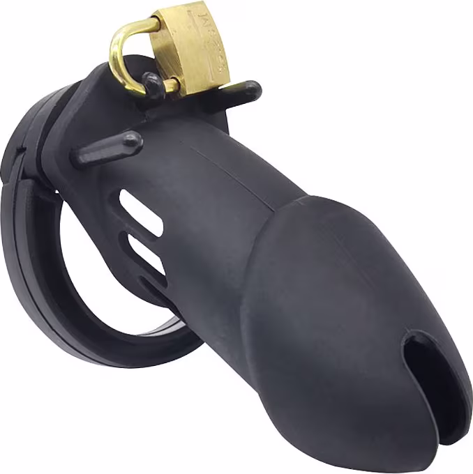 Com design funcional e ponta vazada, permite ventilação e higiene sem comprometer o bloqueio do prazer. A argola anatômica envolve o escroto com firmeza, reforçando a sensação de submissão e impedindo qualquer possibilidade de ereção. O cadeado metálico com chaves adiciona o toque final de poder à experiência, garantindo que apenas quem detém a chave possa liberar o parceiro.