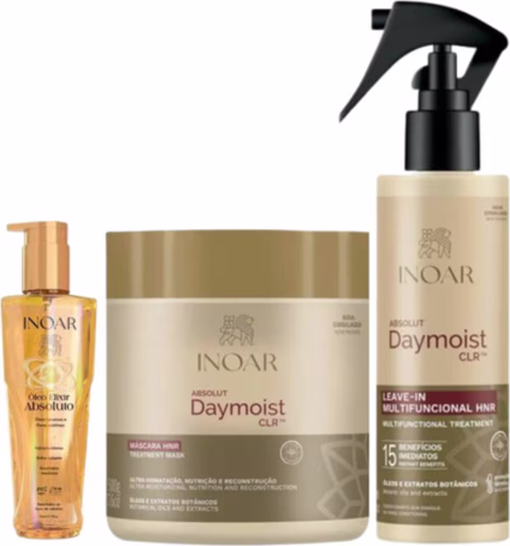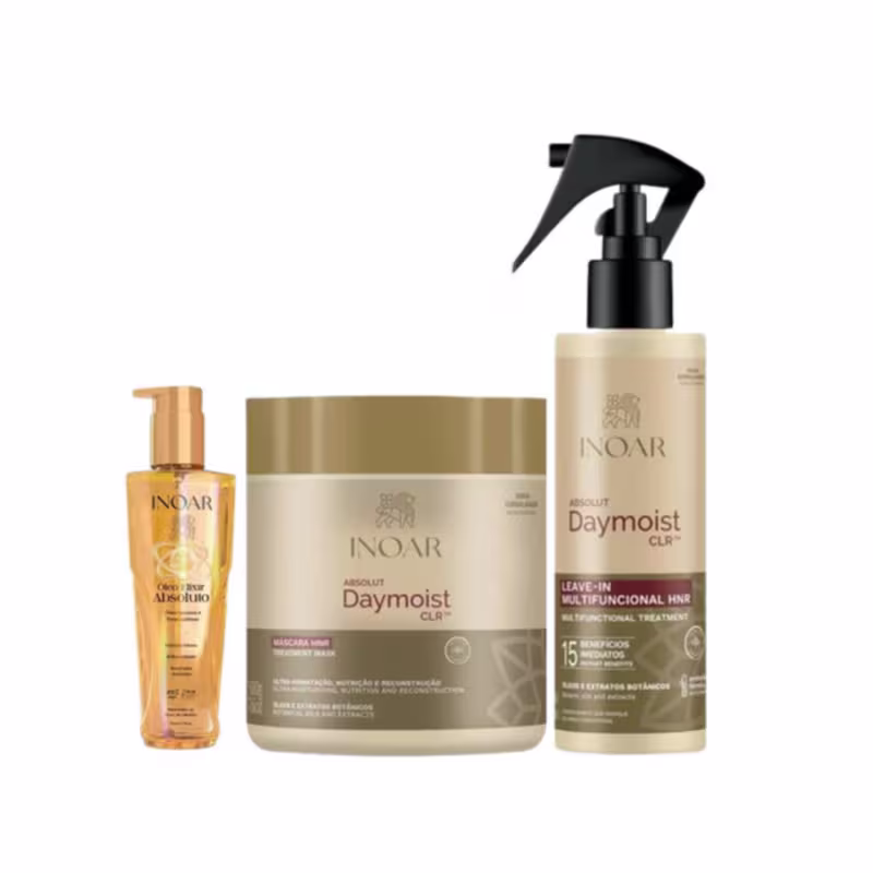 O Kit Inoar Absolut DayMoist CLR repõe nutrientes, hidrata e fortalece os fios.