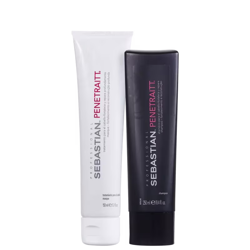 Não sei o CEPDetalhes Kit Sebastian Penetraitt Duo (2 Produtos) Kit de tratamento para cabelos danificados. Kit Sebastian Penetraitt Duo limpa, reconstrói os fios e fortalece a fibra capilar. Kit Sebastian Penetraitt Duo penetra profundamente, aumenta a resistência e a elasticidade do cabelo. Ideal para resgatar a vitalidade, devolver a maciez e garantir maleabilidade. Seus fios ficam recuperados e com toque sedoso. Contém: Sebastian Professional Penetraitt - Shampoo 250ml: limpa suavemente enquanto reconstrói. Sebastian Professional Penetraitt Masque - Tratamento Reconstrutor 150ml: repara e fortalece a fibra capilar. Como Usar Conselho de Aplicação Com o cabelo molhado, passe uma pequena quantidade de shampoo e massageie todo o couro cabeludo. Repita a operação e enxágue bem. Em seguida, retire o excesso de umidade de seus cabelos lavados e passe o tratamento massageando delicadamente o comprimento e pontas dos fios. Enxague bem para não sobrar resíduos. Nossos Experts Ensinam Utilizar os produtos da mesma linha garante que você irá tratar seus fios por completo, da raiz às pontas. Além disso, proporciona um efeito mais intenso e rápido.
