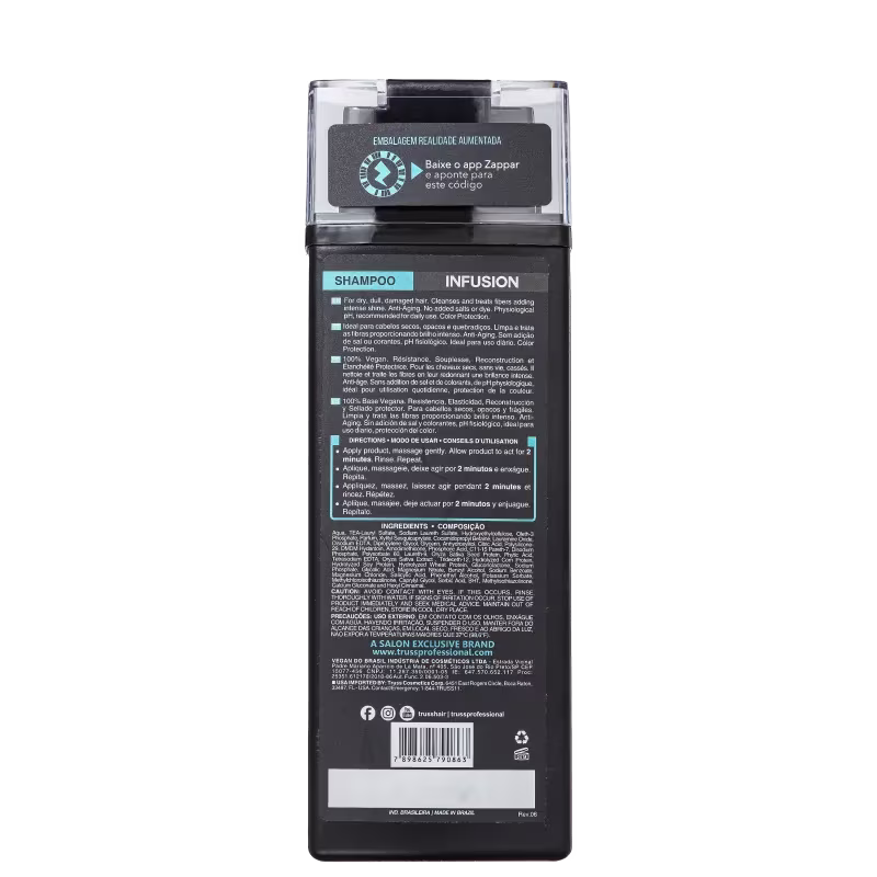 A fórmula do Shampoo Infusion Truss faz uma limpeza suave, que mantem a cor dos cabelos coloridos. Ela restaura o brilho e maciez enquanto auxilia na selagem das cutículas. Seus fios voltam a ter vida e força no cuidado diário.