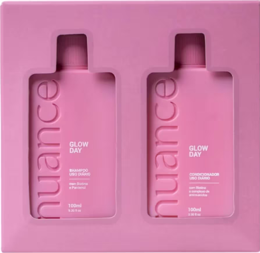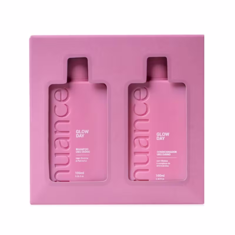 O cuidado que seu cabelo merece, agora no tamanho ideal para te acompanhar em qualquer lugar. O Kit Glow Day Viagem da Nuance Cosméticos une o poder de limpeza suave do shampoo com a hidratação e maciez do condicionador, promovendo fios mais leves, brilhantes e saudáveis todos os dias.